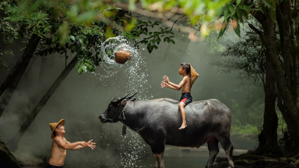 អ្នកថតរូបឈ្មោះ Visoot Uthairam វ័យ៤០ឆ្នាំ បានផ្តិតទិដ្ឋភាពកសិករបានបង្រៀនកូនប្រុសរបស់ខ្លួន ឲ្យចេះឃ្វាលក្របីក្រៅពីការងារសាលារៀន។ ជាទិដ្ឋភាពជនបទក្បែរប្រជុំជននៅ Nong Khai ភាគឦសានប្រទេសថៃ។