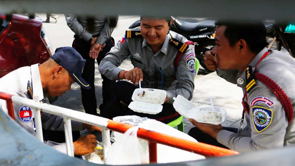 នាវេលាថ្ងៃត្រង់ នៅថ្ងៃទី២៣ វិច្ឆិកា ឆ្នាំ២០១៨ កងកម្លាំងសមត្ថកិច្ចរហូតដល់ជាង ១ម៉ឺននាក់ និងក្រុមគ្រូពេទ្យជាច្រើនរយនាក់ បានពិសាបាយជុំក្រុមការងារយ៉ាងរីករាយ ខណៈកំពុងបំពេញកាតព្វកិច្ច ដើម្បីការពារសណ្ដាប់ធ្នាប់ និងសុវត្ថិភាពប្រជាពលរដ្ឋនៅតាមតំបន់ផ្សេងៗ នៅថ្ងៃទី៣ ដែលជាថ្ងៃបញ្ចប់នៃព្រះរាជពិធីបុណ្យអុំទូក បណ្តែតប្រទីប អកអំបុក និងសំពះព្រះខែនេះផងដែរ។