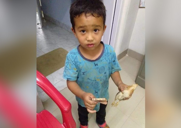 Derek Lalchhanhima អាយុ៦ឆ្នាំត្រូវបានគេថតនៅពេលទៅដល់មន្ទីរពេទ្យ ដៃកាន់កូនមាន់ដែលផុតជីវិតទៅហើយ និង ដៃម្ខាងទៀតកាន់ក្រដាសប្រាប់ ១០ រូពី (ប្រហែល ៥០០ រៀល)។ នេះបើតាម AsiaOne រាយការណ៍។