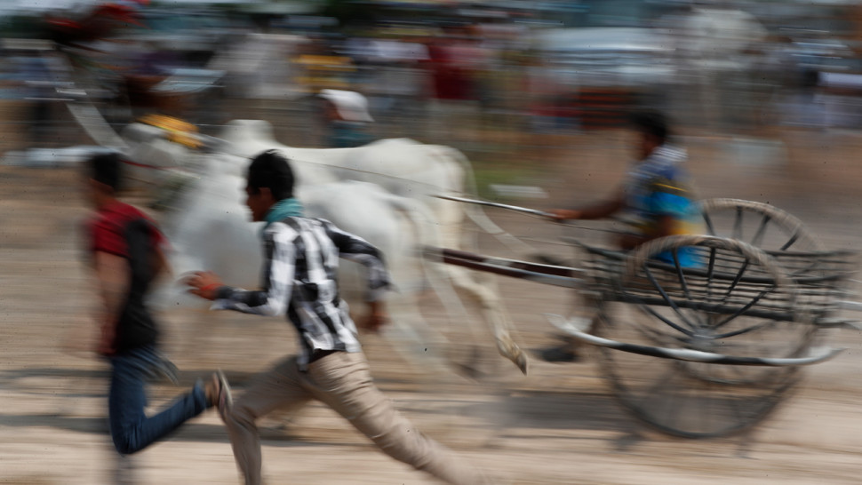 រូបភាពប្រណាំងរទេះសាឡីគោបែបប្រពៃណីរបស់អ្នកកំពង់ស្ពឺ