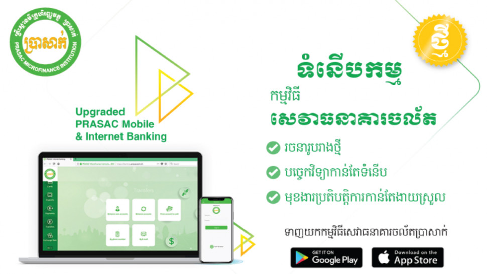 ប្រាសាក់ ដែលជាគ្រឹះស្ថានហិរញ្ញវត្ថុធំជាងគេនៅកម្ពុជា និងឈានមុខគេផ្នែកបច្ចេកវិទ្យាហិរញ្ញវត្ថុ (FinTech) បានធ្វើទំនើបកម្ម និងបានដាក់ឱ្យទាញយកកម្មវិធី (Download App) សេវាធនាគារចល័ត ដែលមានមុខងារកាន់តែពិសេស ផ្ដល់ភាពងាយស្រួល ទំនើប និងមានរូបរាងកាន់តែស្រស់ស្អាត សម្រាប់ឱ្យអតិថិជនអាចធ្វើប្រតិបត្តិការធនាគារបានដោយខ្លួនឯង គ្រប់ពេលវេលា គ្រប់ទីកន្លែង។