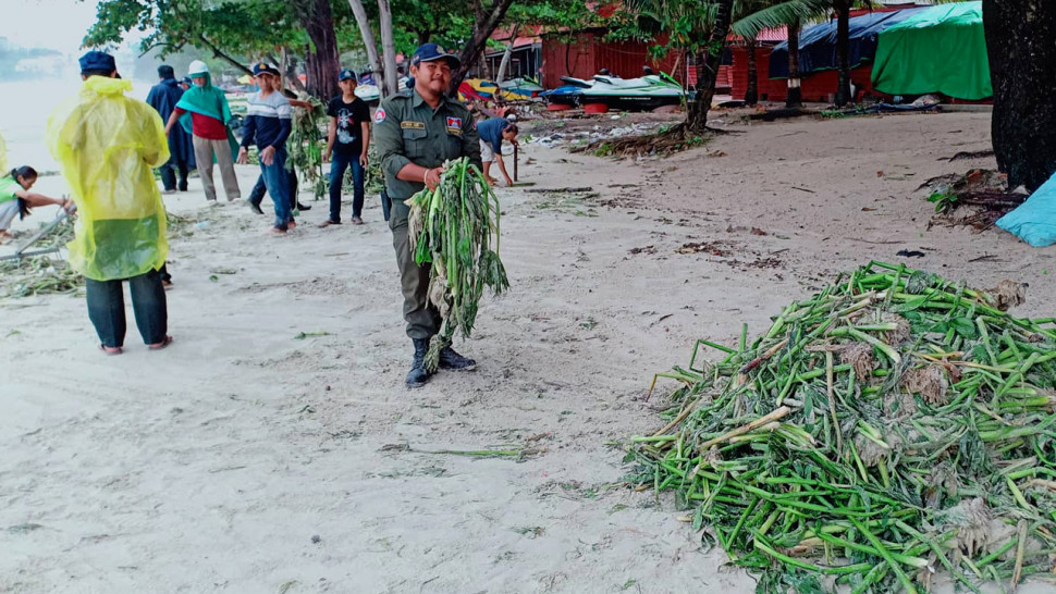 ព្រឹកនេះ អាជ្ញាធរខេត្តព្រះសីហនុ នាំគ្នាសម្អាតគំនរកំប្លោករសាត់តាមទឹកសមុទ្រ