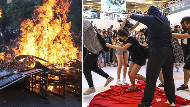 បាតុករហុងកុងផ្ទុះការខឹងសម្បារខ្លាំង នាំគ្នាជាន់ទង់ជាតិចិន និងបិទទ្វារផ្សារទំនើប (មានវីដេអូ)