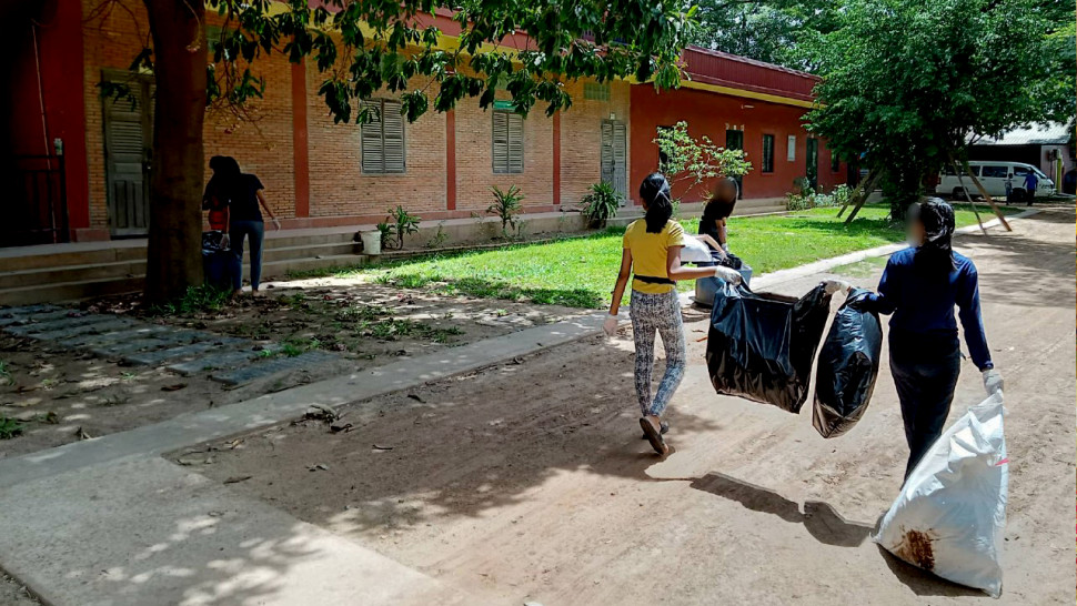 បំពាក់ដោយសម្ភារៈសមស្របសម្រាប់ការសម្អាតនេះ យុវជនចំនួន៣៥នាក់ ភាគច្រើនមកពីអង្គការសុវណ្ណកុមារបានបែងចែករាល់សម្ភារៈ ដែលអាចកែច្នៃបាន ហើយពួកគេបានកែលម្អរសោភ័ណភាព នៃអង្គការនេះ។