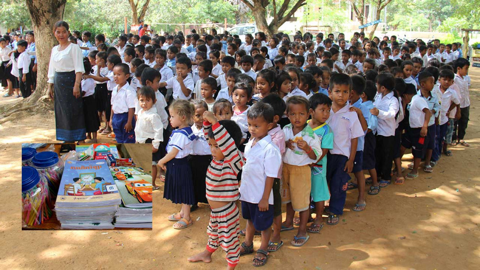 សកម្មភាពនេះមនុស្សធម៌នេះ កើតឡើងបន្ទាប់ពីលោកគ្រូ នាយកសាលា បានអំពាវ នាវ ដល់សប្បុរសជនចូលរួមជាសំភារៈ សិក្សា ដូចជា៖ សៀវភៅ ប៊ិច ខ្មៅដៃ បន្ទាត់ ជ័រលុប កាតាប ក្តារឆ្នួន ទ្រនាប់ ជើង សម្លៀក បំពាក់... ជាដើម ។ល។