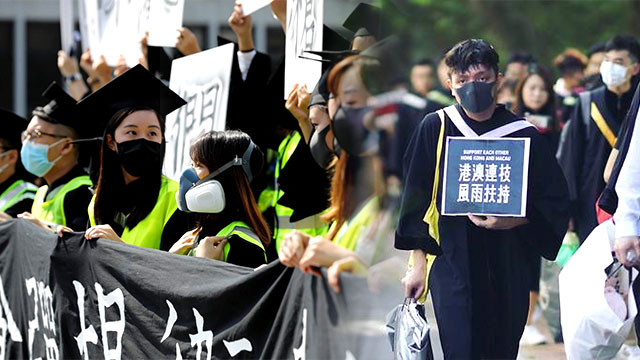 និស្សិតហុងកុងរាប់ពាន់នាក់ នាំគ្នាដើរតវ៉ាតាមដងផ្លូវក្រោយពិធីចែកសញ្ញាប័ត្រ