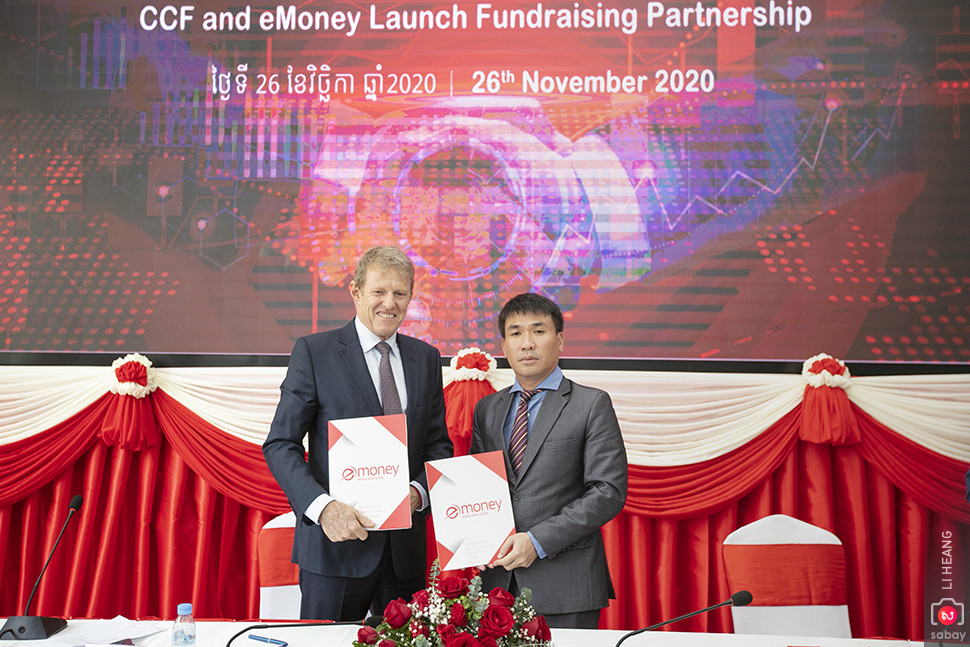 នៅក្នុងថ្ងៃនេះដែរ អង្គការមូលនិធិកុមារកម្ពុជា CCF និងក្រុមហ៊ុនបច្ចេកវិទ្យាហិរញ្ញវត្ថុក្នុងស្រុក eMoney ក៏បានចុះហត្ថលេខាលើអនុស្សរណៈ ប្រកាសភាពជាដៃគូរ និងការអនុវត្តយុទ្ធនាការ ប្រមូលមូលនិធិ រយៈពេល៦ខែ ដើម្បីជួយដល់មូលនិធិកុមារកម្ពុជា CCF តាមរយៈទម្រង់បច្ចេកវិទ្យាហិរញ្ញវត្ថុរបស់ក្រុមហ៊ុន eMoney នៅក្នុងប្រទេសកម្ពុជា។ ការចុះហត្ថលេខា ប្រកាសភាពជាដៃគូរនេះ មានការចូលរួមពី លោក Pham Doan Cuong អគ្គនាយកក្រុមហ៊ុន eMoney និងស្ថាបនិកអង្កការមូលនិធិដើម្បីកុមារកម្ពុជា “បុរសស្នាមញញឹមកុមារស្ទឹងមានជ័យ” លោក Scott Neeson រួមជាមួយអ្នកពាក់ព័ន្ធជាច្រើននាក់ផងដែរ។