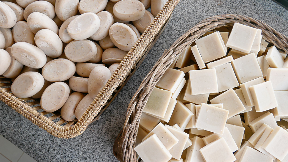 សាប៊ូនេះផលិតដោយដៃផ្ទាល់ប្រើបច្ចេកទេសបែបបុរាណ ជាមួយគ្រឿងផ្សំបែបធម្មជាតិសុទ្ធសាធ