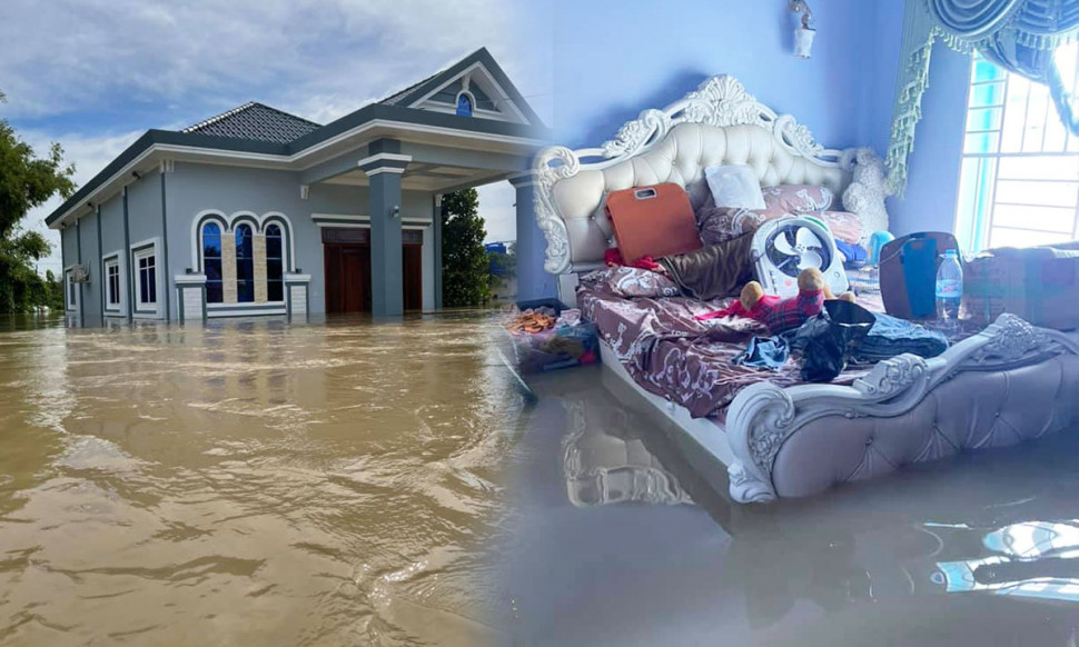 សារដាស់តឿន! ផ្ទះមួយខ្នងជិតស្ទឹងព្រែកត្នោត ទឹកបុកលិចស្ទើរដល់បង្អួច ទ្រព្យរបស់ក្នុងផ្ទះលិចលង់អស់