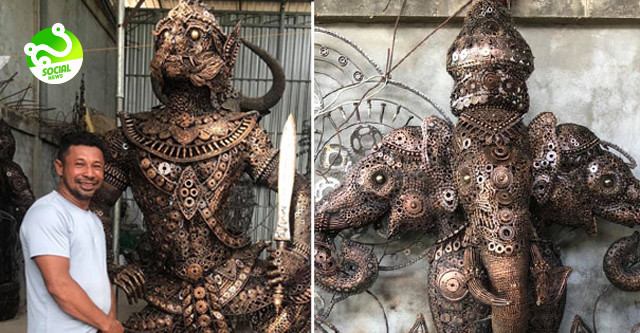 មានឈ្មោះហៅថា អ៊ូ វណ្ណឌី កូនខ្មែរម្នាក់នេះបានចំណាយពេលវេលាជាច្រើនជាមួយនឹងភាពអំណត់អត់ធ្មត់ និងស្មិងស្មាធិ៍ ដើម្បីប្រែក្លាយគ្រឿងបន្លាស់ម៉ូតូចាស់ៗប្រើការលែងកើតទៅជារូបសំណាកបុរាណខ្មែរដ៏ល្អឯករួមមានដូចជា ហនុមាន, ដំរីក្បាលបីព្ធរាវ័ណ, គោព្រៃ និងវត្ថុសិល្បៈជាច្រើនទៀតគួរជាទីមោទនៈ។