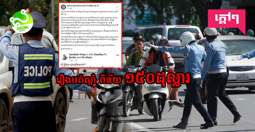 កំពុងក្ដៅ! ស្នងការដ្ឋាននគរបាលរាជធានីភ្នំពេញ រង់ចាំម្ចាស់គណនីឈ្មោះ Sambath Viriya ចូលបំភ្លឺ ក្រោយធ្លាយរឿងបូលីសពិន័យ ១៥០ដុល្លារព្រោះបត់ស្ដាំ