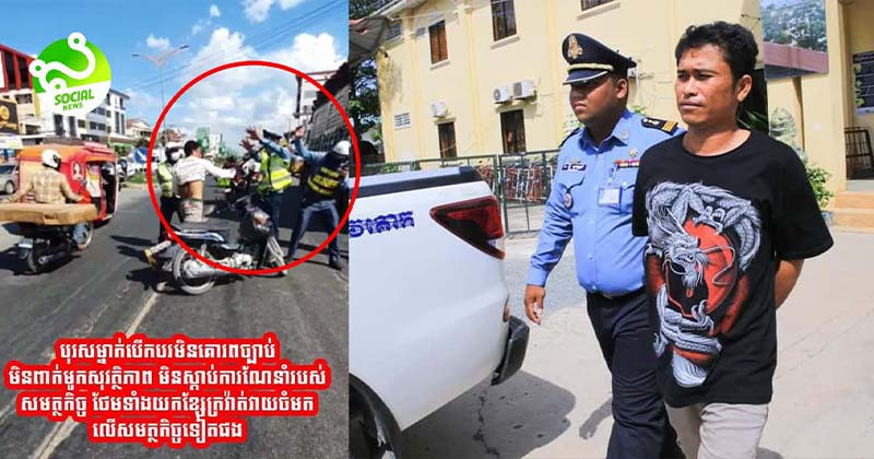 បុរសជើងខ្លាំង! ជាប់ទោសដល់ទៅ៣មាត្រា ក្រោយល្មើសច្បាប់ចរាចរណ៍ ជេរប្រមាថ និងយកខ្សែក្រវ៉ាត់វាយសមត្ថកិច្ច