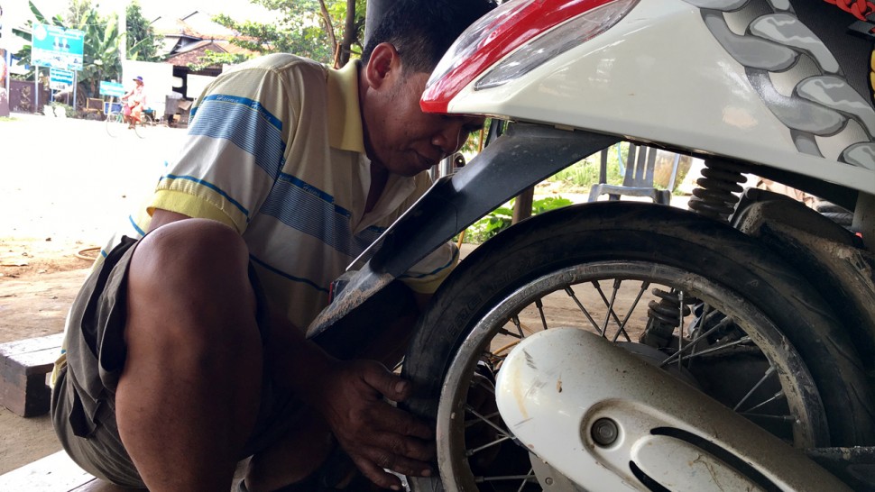 ក្នុងអាជីពជាជាងជួសជុលម៉ូតូ និងប៉ះអ៊ុតកង់ម៉ូតូ លោក ស្រួច ខេង បានប្រាប់ថា លោកបានប្រកបរបរនេះ អស់រយៈពេលជាច្រើនឆ្នាំមកហើយ។ របរនេះហើយដែលបានជួយឱ្យលោកពូមានលទ្ធភាពផ្គត់ផ្គង់ការសិក្សារបស់កូនៗ រហូតដល់ថ្នាក់មហាវិទ្យាល័យ និងឈានដល់ថ្នាក់អនុបណ្ឌិតនៅឯប្រទេសចិន។
