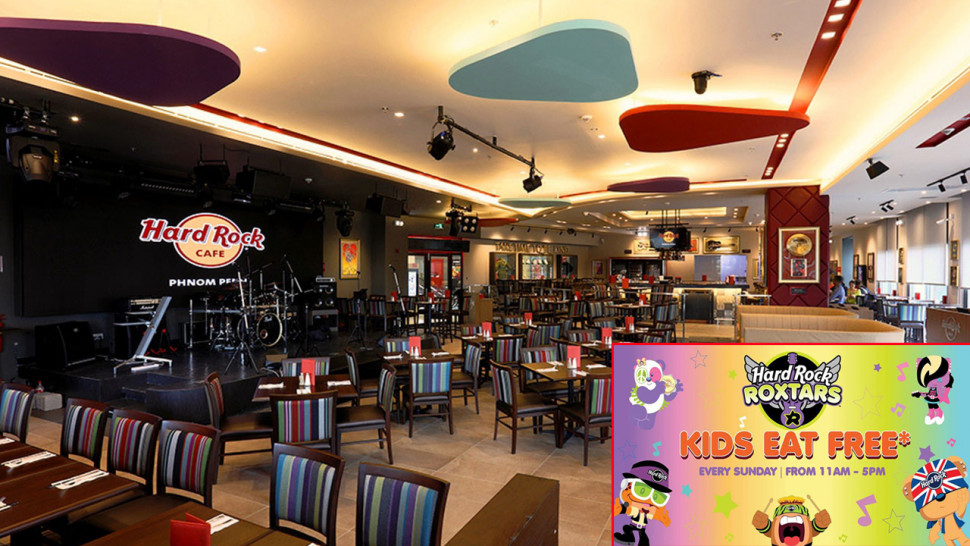 ដំណឹងល្អសម្រាប់អ្នកដែលមានកូន ឬក្មួយក្មេងៗទាំងអស់ ព្រោះឥលូវនេះភោជនីយដ្ឋានល្បីឈ្មោះលំដាប់ពិភពលោក Hard Rock Café កំពុងមានប្រូម៉ូសិនពិសេស «Kids Eat Free» ដោយបើកឲ្យក្មេងៗអាយុក្រោម ១១ឆ្នាំ ញ៉ាំអាហារឈុតកុមារ Free រៀងរាល់ថ្ងៃអាទិត្យ ចាប់ពីម៉ោង ១១ព្រឹក ដល់ ៥ល្ងាច។