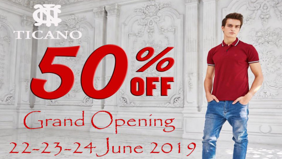 កម្មវិធីពិសេសបញ្ចុះតម្លៃរហូតដល់ 50% ពីហាងសំលៀកបំពាក់បុរស TICANO ប្រេនរបស់ថៃ នៅផ្សារទំនើបអូឡាំព្យា។ សំលៀកបំពាក់ អមជាមួយសម្ភារៈតុបតែងខ្លួនផ្សេងៗ គឺជាការបង្ហាញមួយ នៃភាពទាន់សម័យ ភាពជឿជាក់ និងជួយជំរុញឲ្យបុរសៗ ទទួលបាននូវការសរសើរពីសំណាក់អ្នកដទៃ មកលើការស្លៀកពាក់ដ៏សក្តិសម និងបង្ហាញពីភាពសង្ហារបស់ខ្លួន។