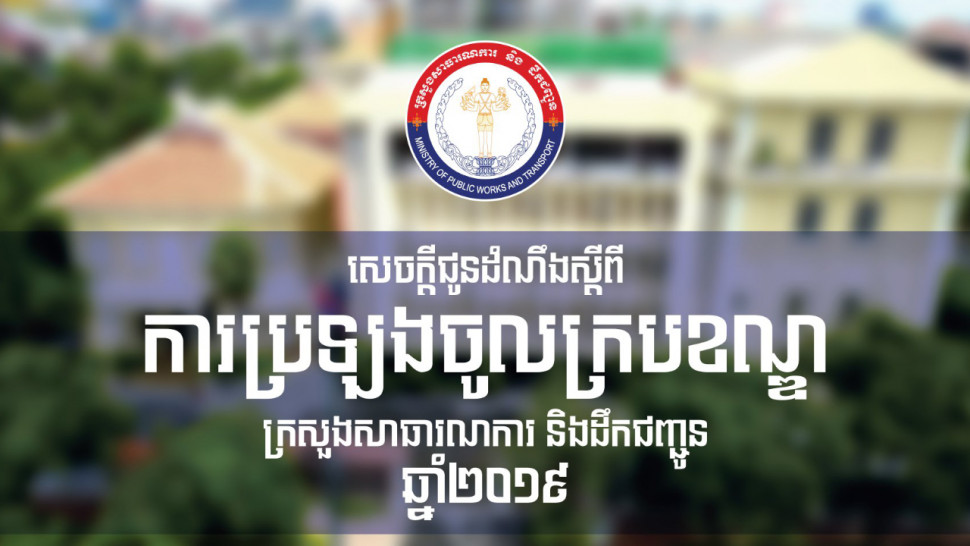 សេចក្តីជូនដំណឹងស្តីពីការប្រឡងជ្រើសរើសបេក្ខជន សិស្ស និស្សិត មន្រ្តីរាជការ អោយចូលបម្រើការងារក្នុងក្របខណ្ឌក្រសួងសាធារណការ និងដឹកជញ្ជូនសម្រាប់ឆ្នាំ២០១៩។