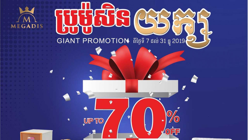 ក្រុមហ៊ុន មេហ្គាឌីស ផ្តល់ជូននូវប្រូម៉ូសិនយក្សជាមួយការលក់បញ្ចុះតម្លៃ រហូតដល់ ៧០% ចាប់ពីថ្ងៃទី ៧ រហូតដល់ដំណាច់ឆ្នាំ២០១៩ នៅហាងមេហ្គាឌីសប៉េងហួតបឹងស្នោរ។