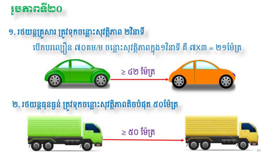 ទី២. រថយន្តធន់ធ្ងន់ត្រូវទុកចន្លោះសុវត្ថិភាពតិចបំផុត ៥០ម៉ែត្រ។