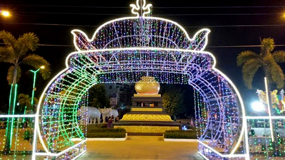 ខេត្តកំពង់ឆ្នាំង បានបង្អួតសម្រស់សម្រាប់តាមរយៈការតុបតែងភ្លើងព័ណ៌ ដើម្បីរៀបចំពិធីឆ្លងឆ្នាំសកល ២០១៩ -២០២០ នារាត្រីនេះ។