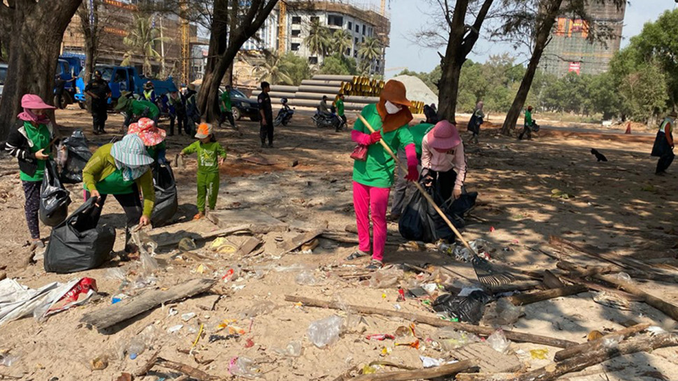 រដ្ឋបាលក្រុងព្រះសីហនុ ដឹកនាំកម្លាំងសំអាតបរិស្ថាន យកសំរាមចេញពីឆ្នេរអូរឈើទាល