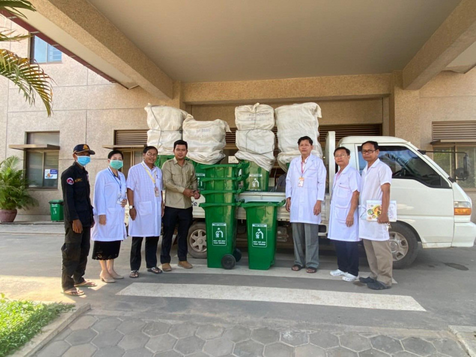 មន្ត្រីរដ្ឋបាលខេត្តព្រះសីហនុ បាននាំយកធុងសម្រាម២៤ធុង ដែលបានមកពីជំនួយរបស់សប្បុរសជន ដើម្បីជូនទៅដល់មន្ទីរពេទ្យបង្អែកខេត្ត។