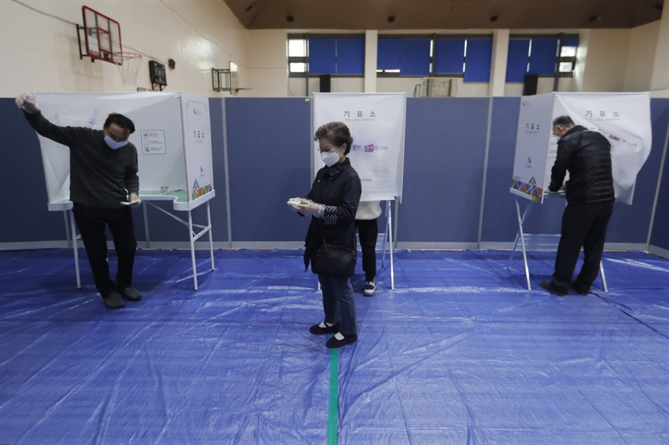 ដោយមានពាក់ម៉ាស់និងស្រោមដៃ ប្រជាជនកូរ៉េខាងត្បូងបានទៅបោះឆ្នោតនៅថ្ងៃពុធ ទី១៥ខែមេសាដើម្បីជ្រើសរើសសមាជិកសភាចំនួន៣០០ នាក់ចំពេលមានការផ្ទុះឡើងនៃវីរុសកូវីដ១៩។