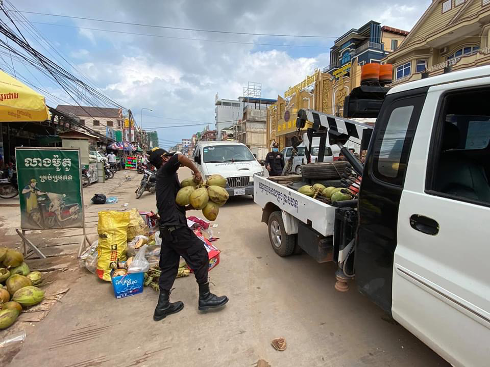 សមត្ថកិច្ចក្រុងព្រះសីហនុ ដកហូតសម្ភារៈអ្នកលក់ដូរ បំពានផ្លូវថ្នល់