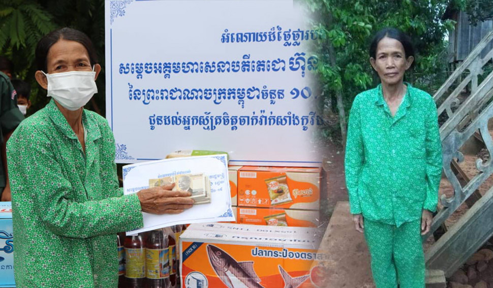 អ្នកស្ម័គ្រចិត្តចាក់វ៉ាក់សាំងកូវីដ-១៩ លេខរៀងទី៦លាន ទទួលបានអំណោយដ៏ថ្លៃថ្លារបស់ សម្តេចអគ្គមហាសេនាបតីតេជោ ហ៊ុន សែននាយករដ្ឋមន្ត្រីនៃព្រះរាជាណាចក្រកម្ពុជា គណកម្មការចំពោះកិច្ចចាក់វ៉ាក់សាំងកូវីដ-១៩ ក្នុងក្របខណ្ឌទូទាំងប្រទេស ប្រគល់ជូនទៅកាន់លោកស្រី ផេង សឿន អាយុ៦៧ គាត់ជាកសិករ ដែលសព្វថ្ងៃរស់នៅភូមិតាអុង ឃុំតាអុង ស្រុកចំការលើ ខេត្តកំពង់ចាម។