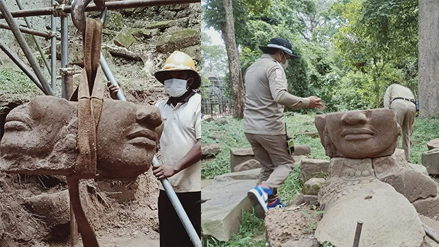 រំភើបណាស់! ក្រុមអភិរក្សបានប្រទះឃើញ ព្រះសិរមេទេវតាផ្នែកកន្ទុយនាគនៅខ្លោងទ្វារតាកាវ