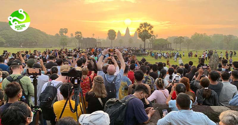 ឃើញហើយរំភើប! ភ្ញៀវទេសចរជាតិ និងអន្តរជាតិ រាប់រយនាក់ប្រជ្រៀតគ្នាទស្សនា ថ្ងៃរះចំកំពូលប្រាសាទអង្គរវត្ត